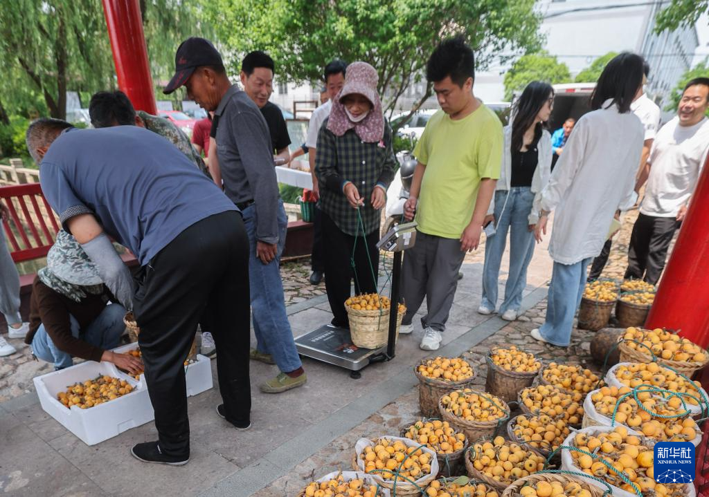 5月24日,许溇村枇杷种植基地在统一收购种植户采摘的枇杷。许溇村被誉为“太湖枇杷村”,今年迎来600余亩白玉枇杷丰收。