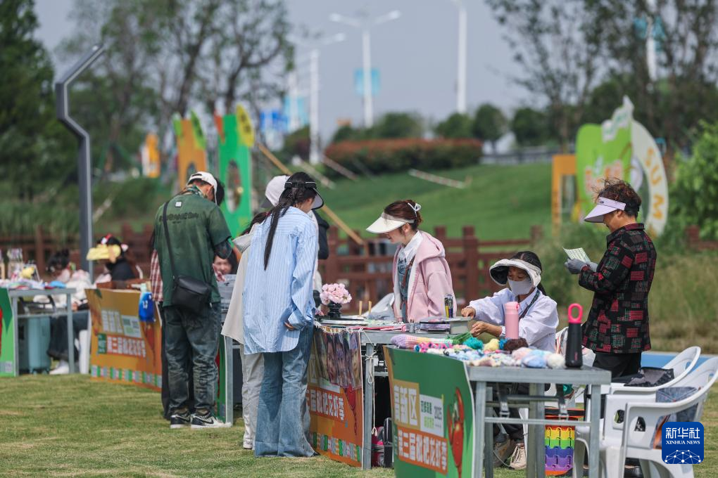 5月24日,游客在幻溇村清野休闲营地夏日枇杷龙虾季活动现场的特产市集上选购乡村特产和手工艺品。