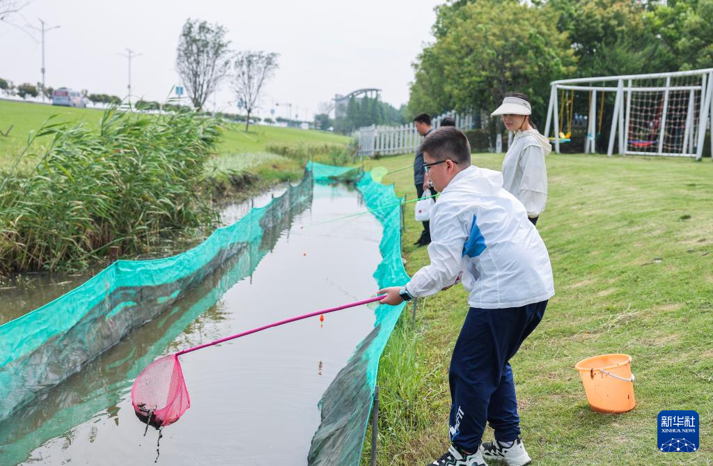5月24日,游客在幻溇村清野休闲营地钓小龙虾。