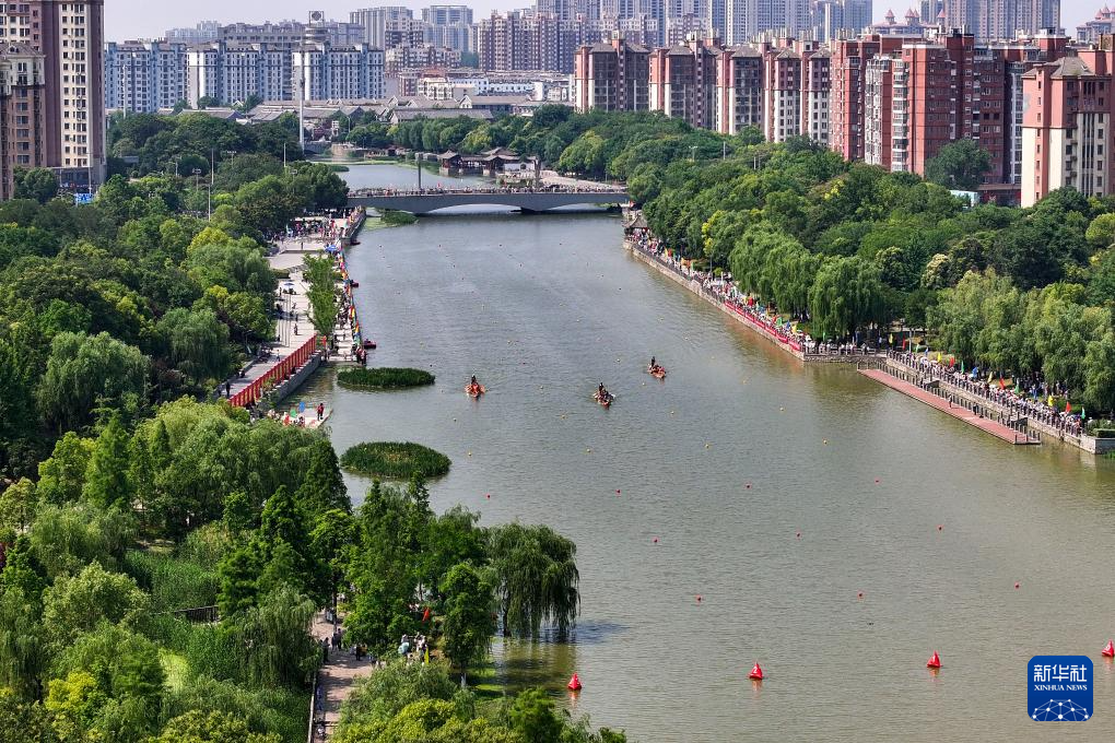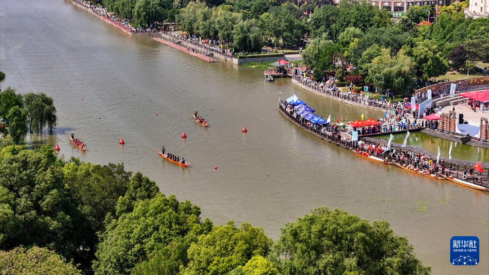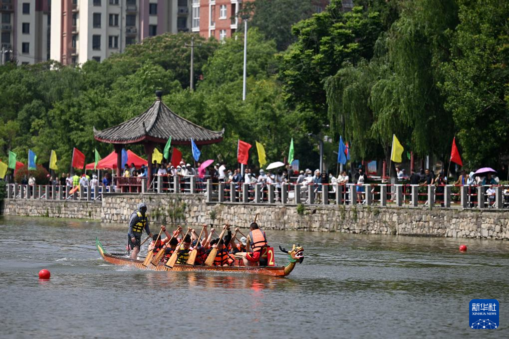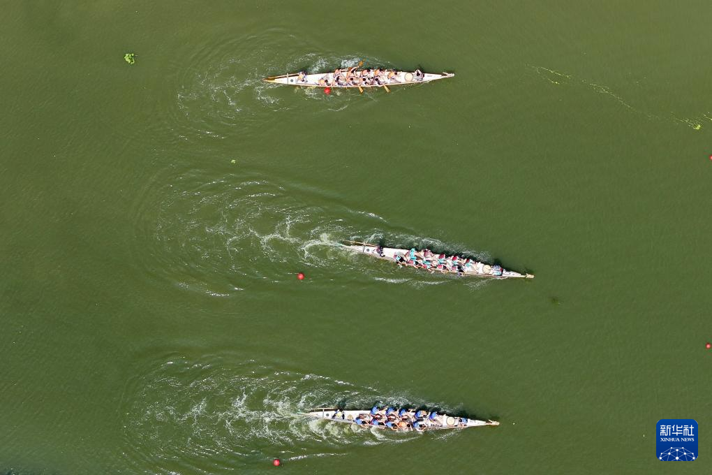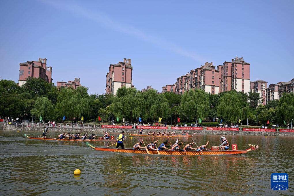 端午节临近,安徽省蚌埠市五河县举办龙舟比赛,迎接传统佳节到来。