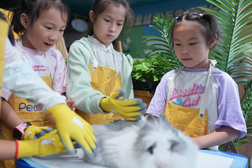 6月2日,小朋友在杭州青少年活动中心“Do都城”体验“宠物疗愈师”职业。