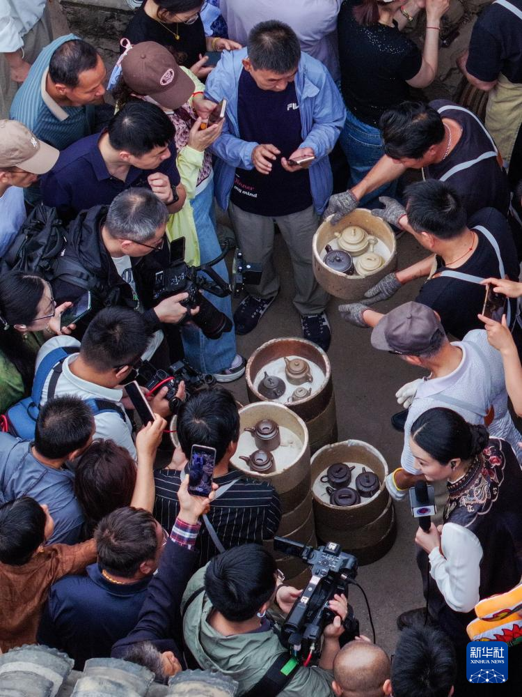 5月31日,工作人员在江苏宜兴前墅龙窑进行开窑活动。