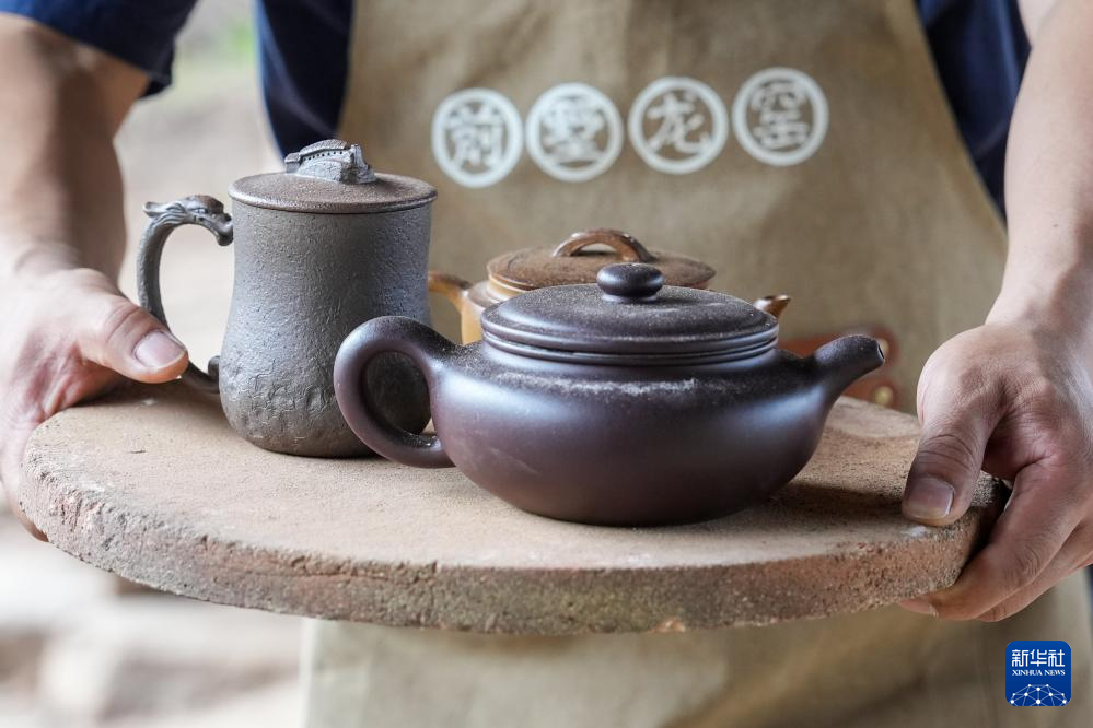 5月31日,工作人员展示前墅龙窑端午烧制的作品。