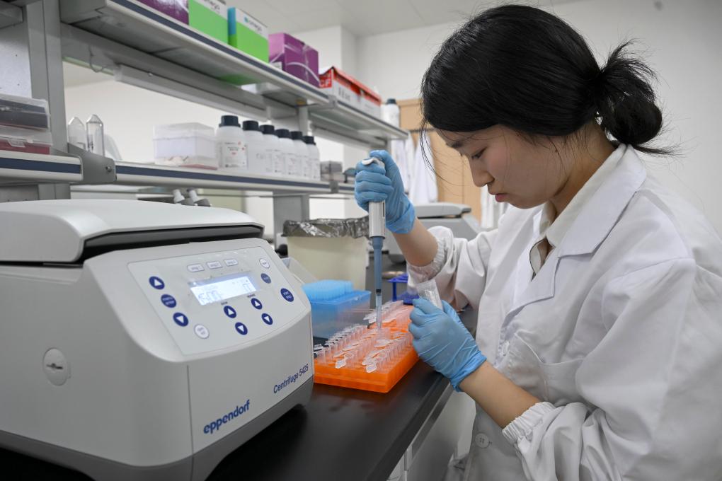 7月6日,研究人员在黄淮海(宿州)种业科技谷南京农业大学大豆生物育种中心分子生物学实验室工作。