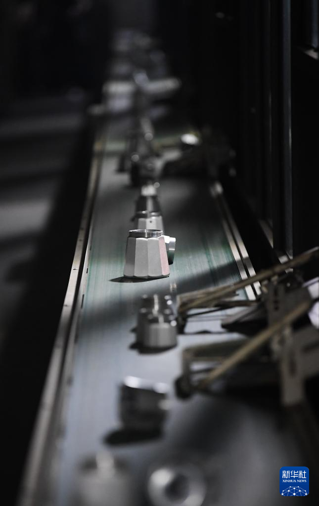 这是在浙江创建厨具有限公司拍摄的摩卡壶自动生产线(7月8日摄)。