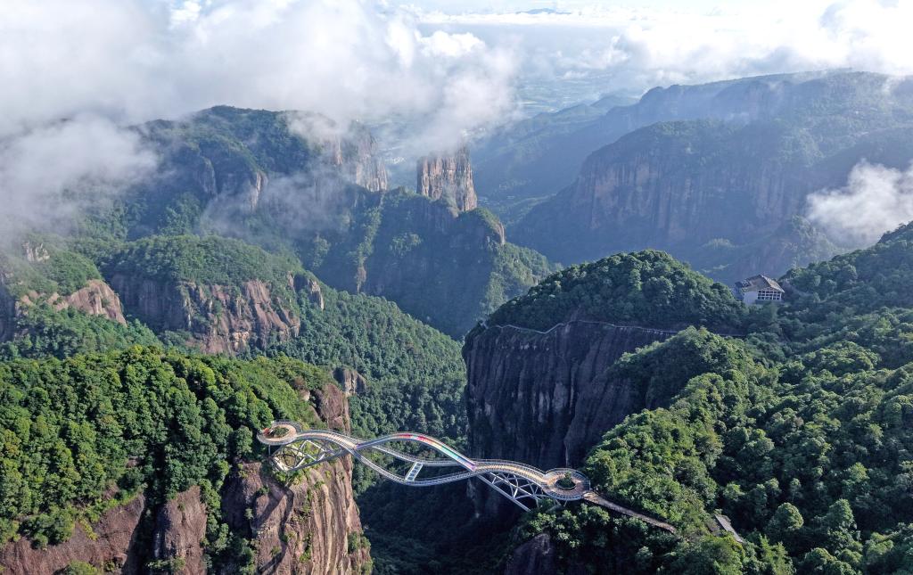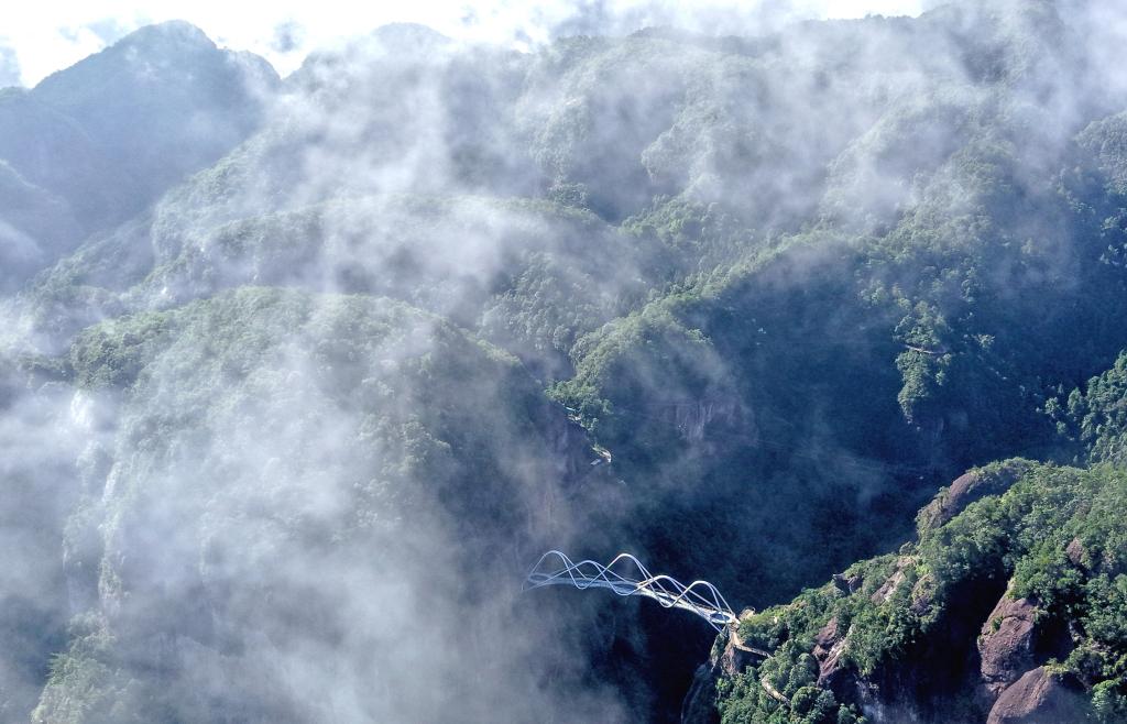 近日,浙江省台州市仙居县神仙居景区云雾缭绕,群峦若隐若现,宛如人间仙境。
