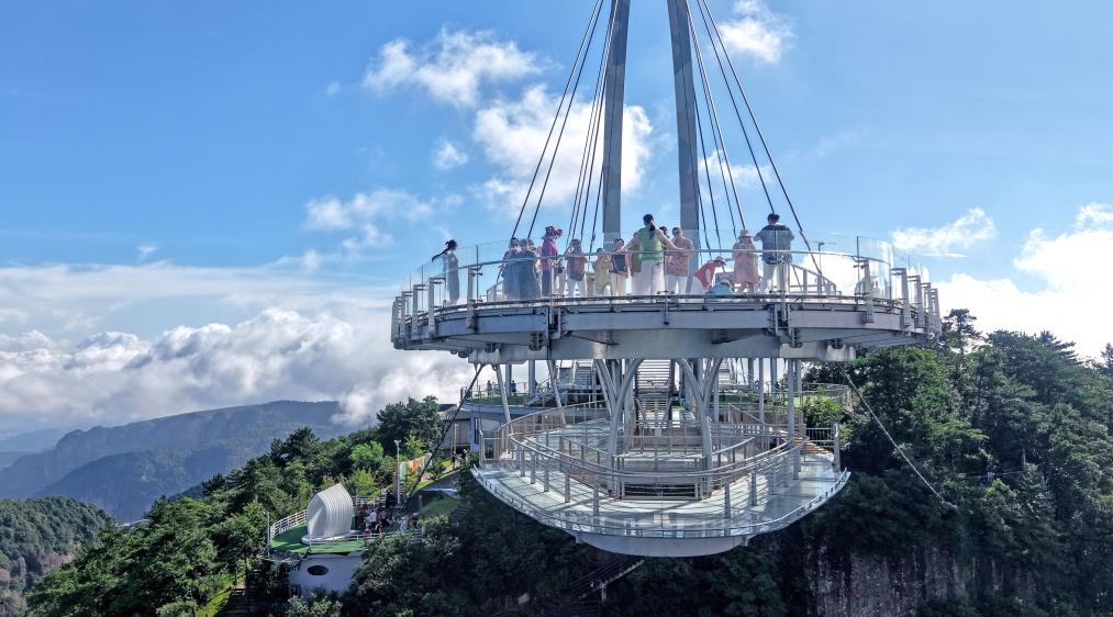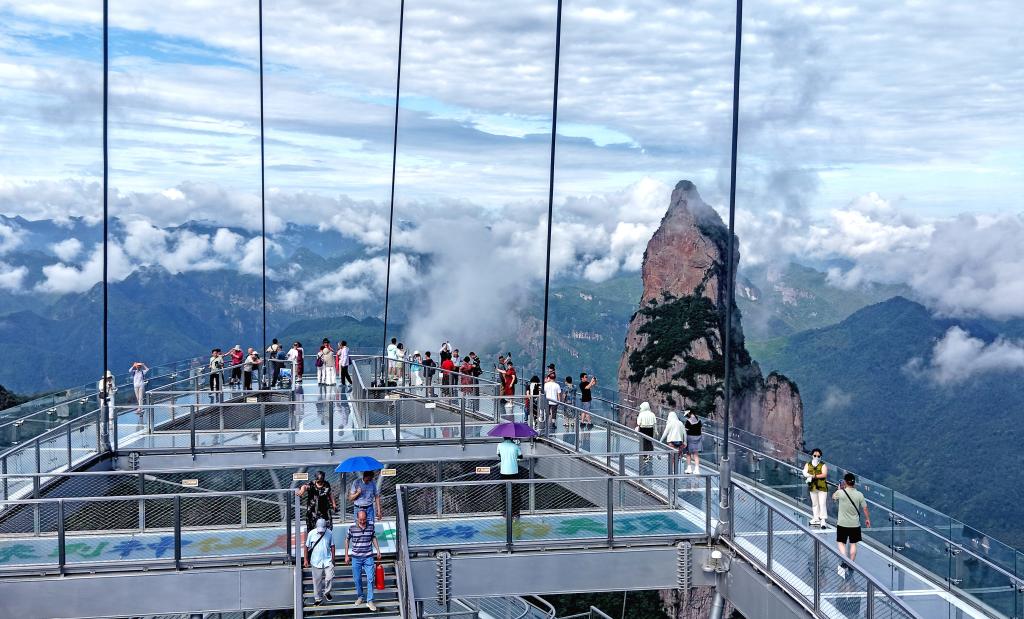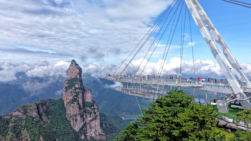 ↑2025年7月12日,游客在浙江省台州市仙居县神仙居景区游玩。(无人机照片)CICPHOTO/王华斌 摄