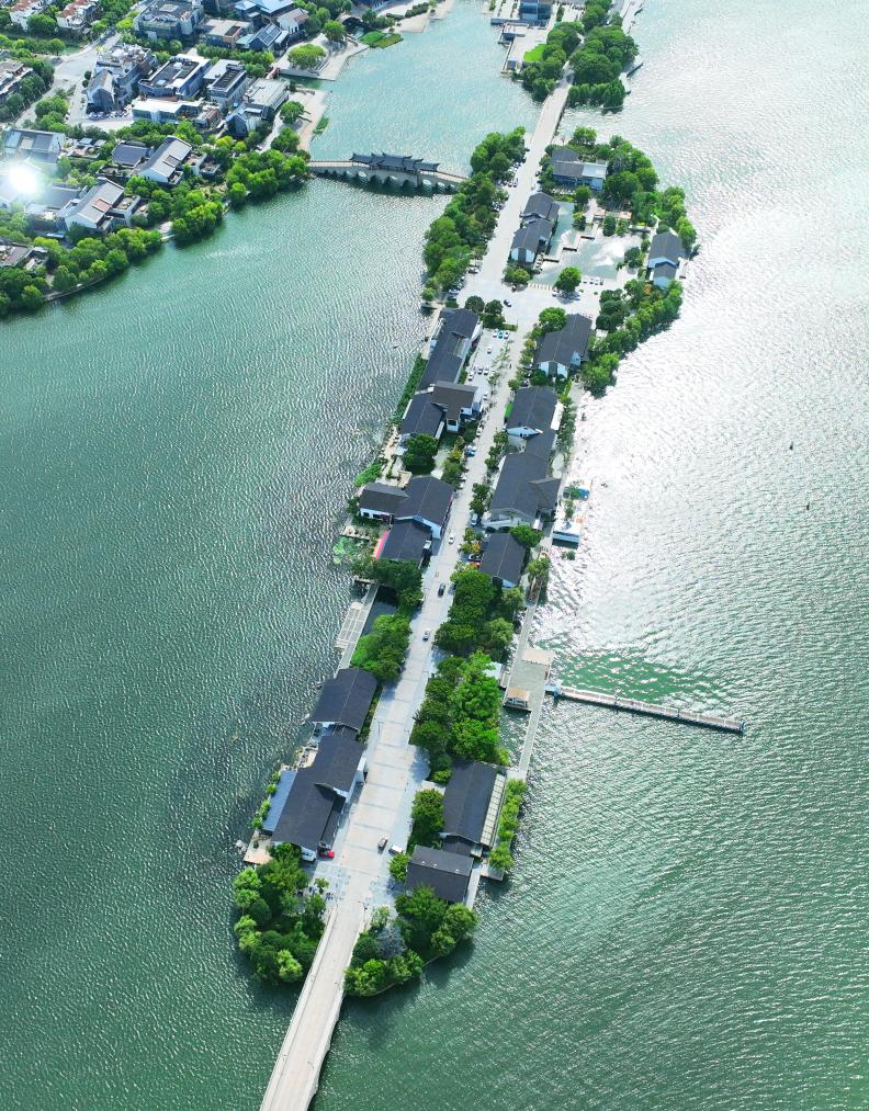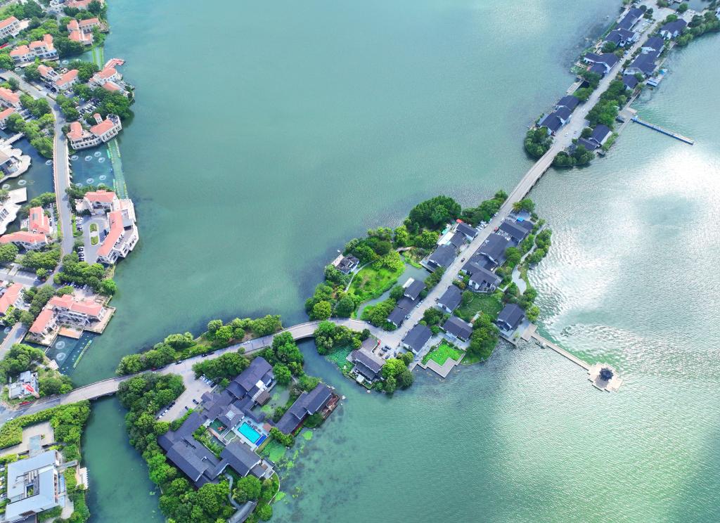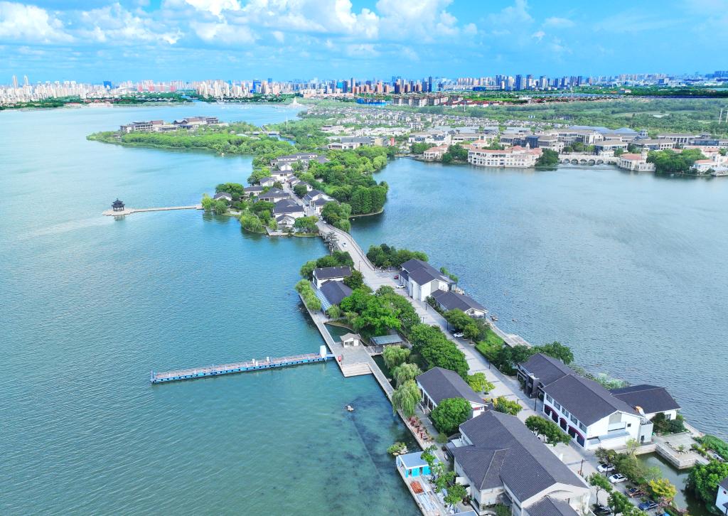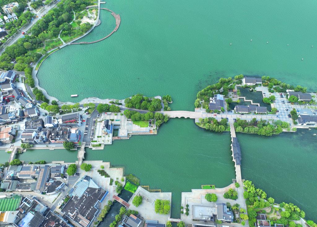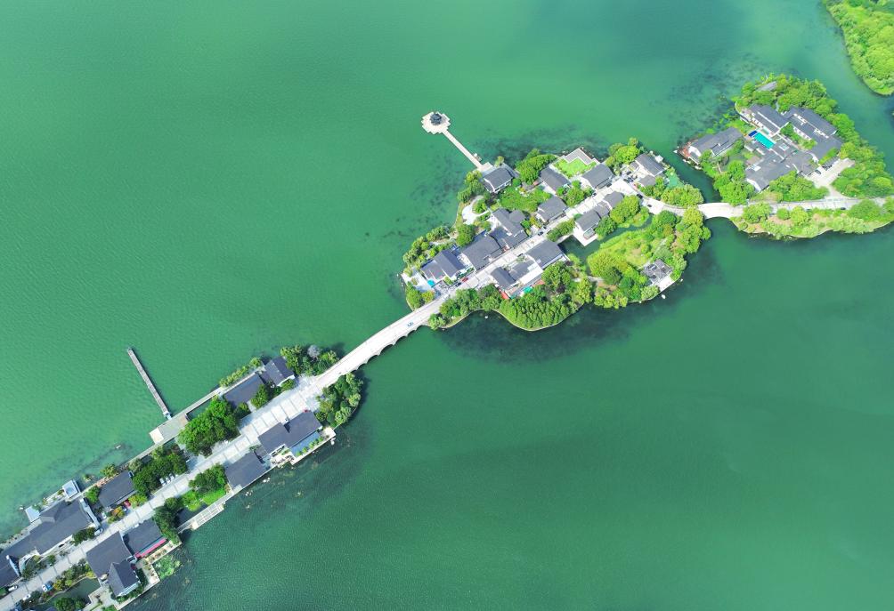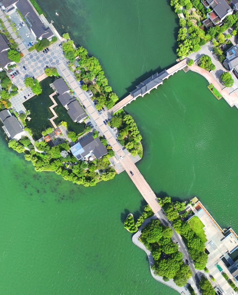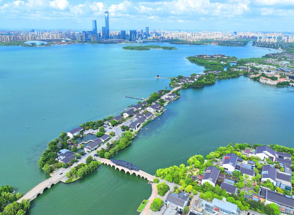 近年来,江苏省苏州工业园区持续加强金鸡湖水环境治理,碧绿的湖面与李公堤相映成趣,构成一幅水清岸绿的城市生态画卷。