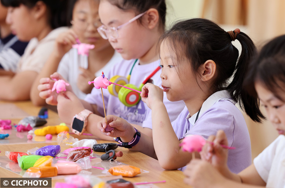 2025年7月28日,江苏省连云港市连云区板桥街道组织暑托班的小朋友们开展“童眼看非遗 巧手做面塑”活动。孩子们在街道新打造的非遗面塑手作馆里,聆听面塑的历史文化故事、感悟其内涵,学习用揉、捏、压、挑等技法制作面塑小动物,在体验中感受指尖上的艺术魅力,丰富了暑期生活。
