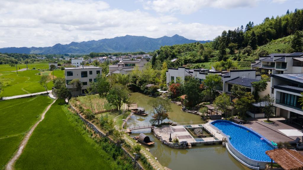 这是7月24日拍摄的安徽省黄山市黟县丰梧村风景(无人机照片)。新华社记者 张端 摄这个“小而美”的乡建项目