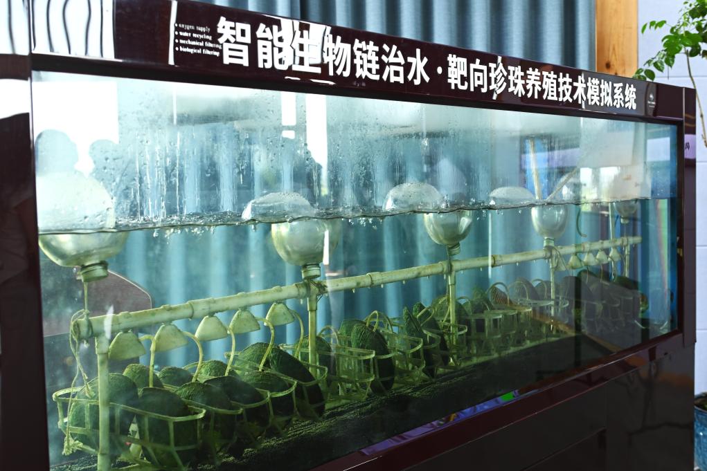 这是8月9日在浙江省诸暨市山下湖镇拍摄的珍珠养殖技术模拟系统。