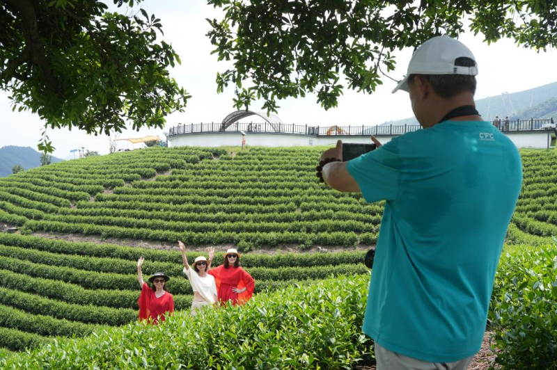 走进“一片叶子”茶饮空间,占据一整面墙的落地窗如别致的取景框,将窗外的绿色茶海尽收眼底。游客郑晨语临窗而坐,手捧一杯以安吉白茶为原料调制的饮品,清香氤氲。“我一直对茶文化感兴趣,但在安吉,我真正感受到茶叶的力量。茶旅巧妙融合,老百姓的致富之道就在眼前展现。”