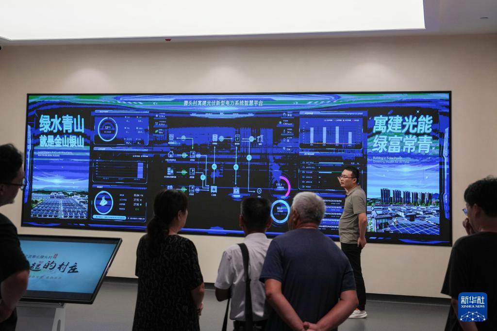 8月12日,宁波奉化萧王庙街道滕头村村民代表在了解光伏发电项目的智慧平台。
